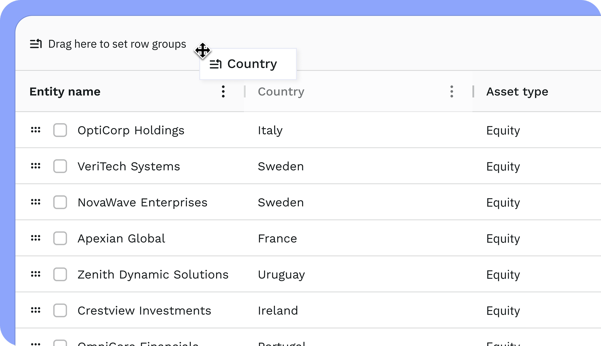 Vous pouvez désormais réorganiser votre vue globale du portefeuille directement sur la plateforme. Glissez et déposez des colonnes, regroupez vos données par secteur, pays, type d'actif ou toute autre dimension qui vous importe, sans rien exporter. Ce qui prenait 20 minutes prend maintenant quelques secondes, et vos données sont toujours synchronisées et mises à jour avec la Golden Source ESG de WeeFin. Cette fonctionnalité est déjà disponible pour tous les utilisateurs disposant des capacités Fund Aggregation.